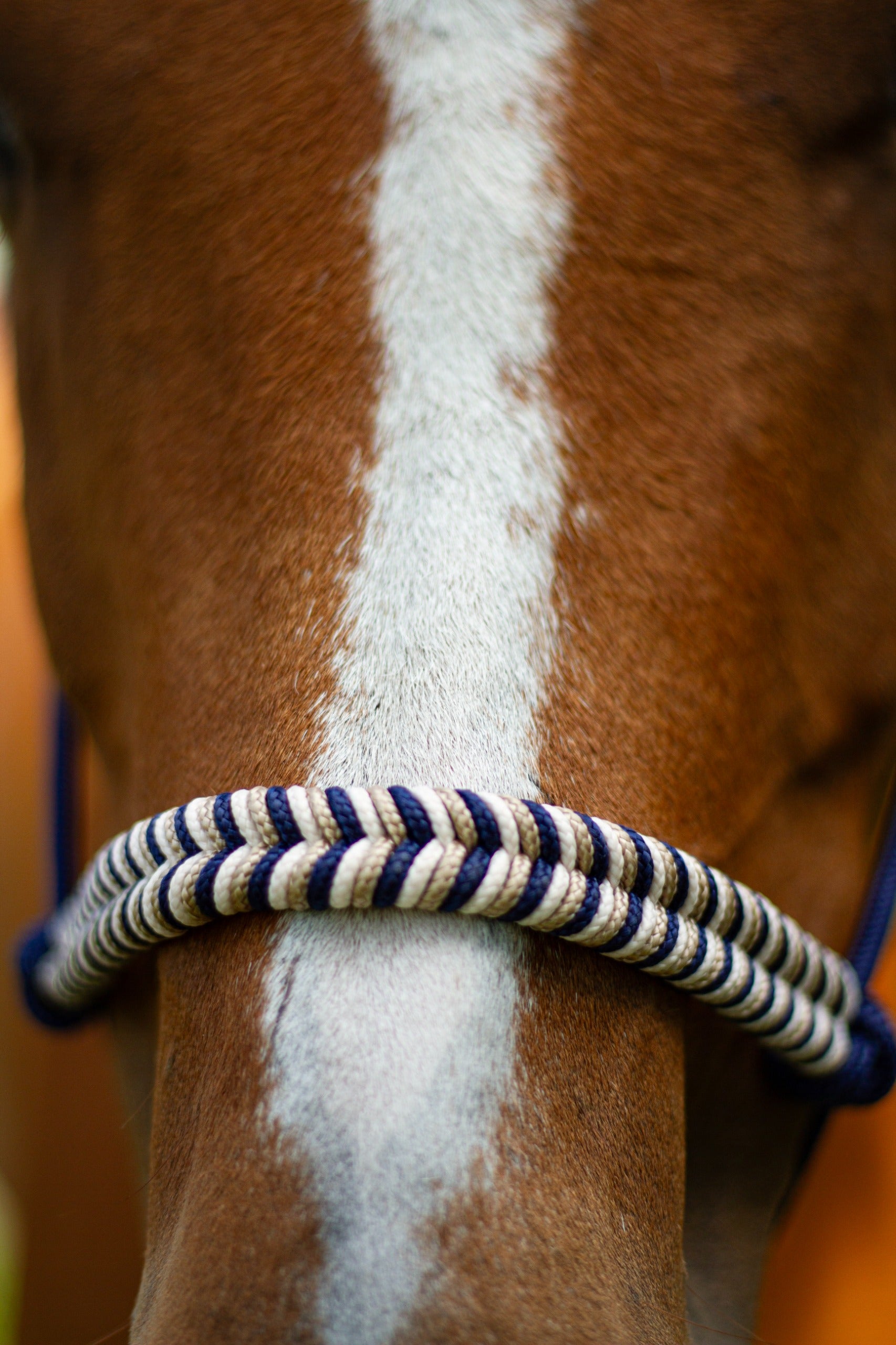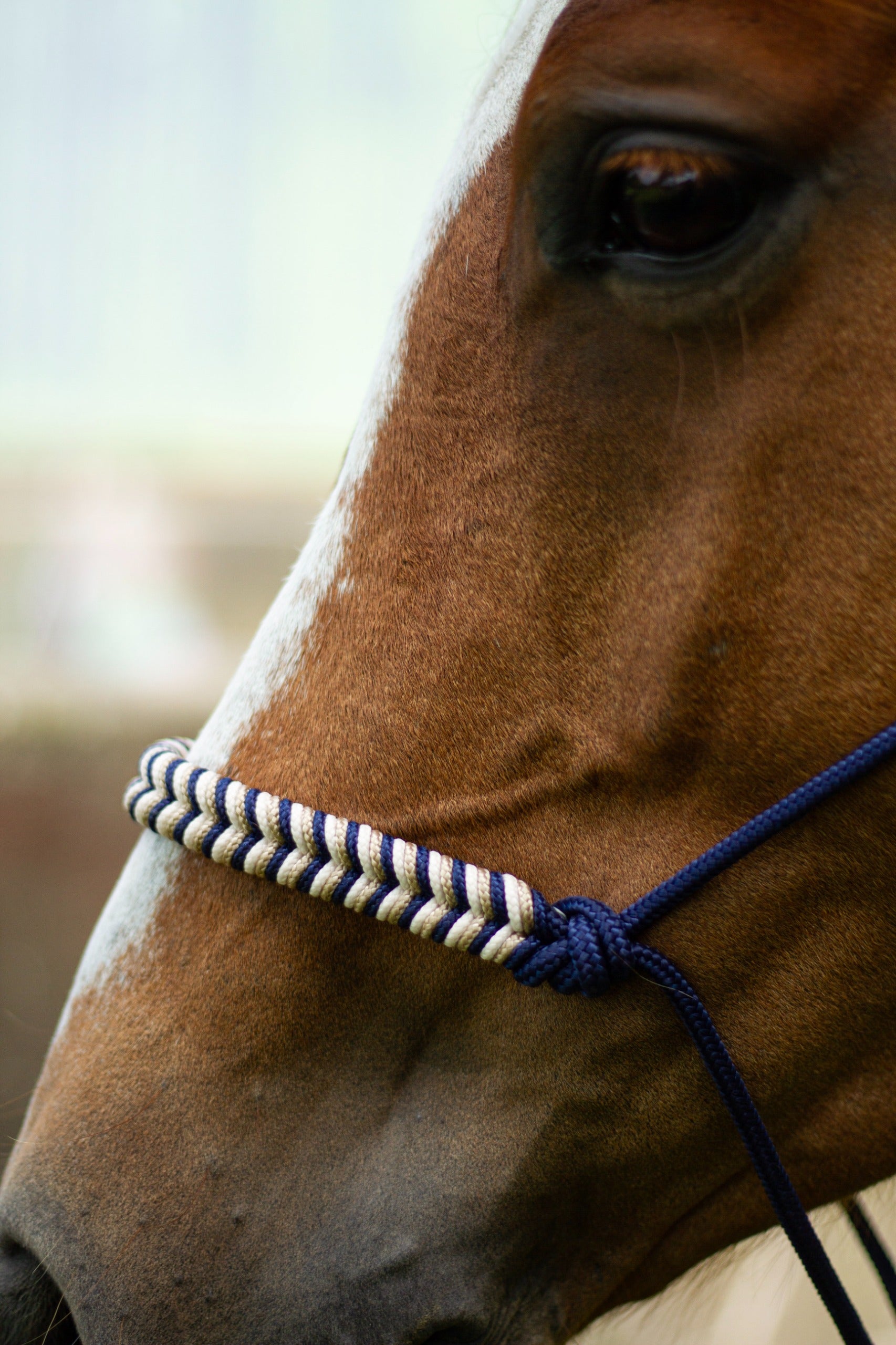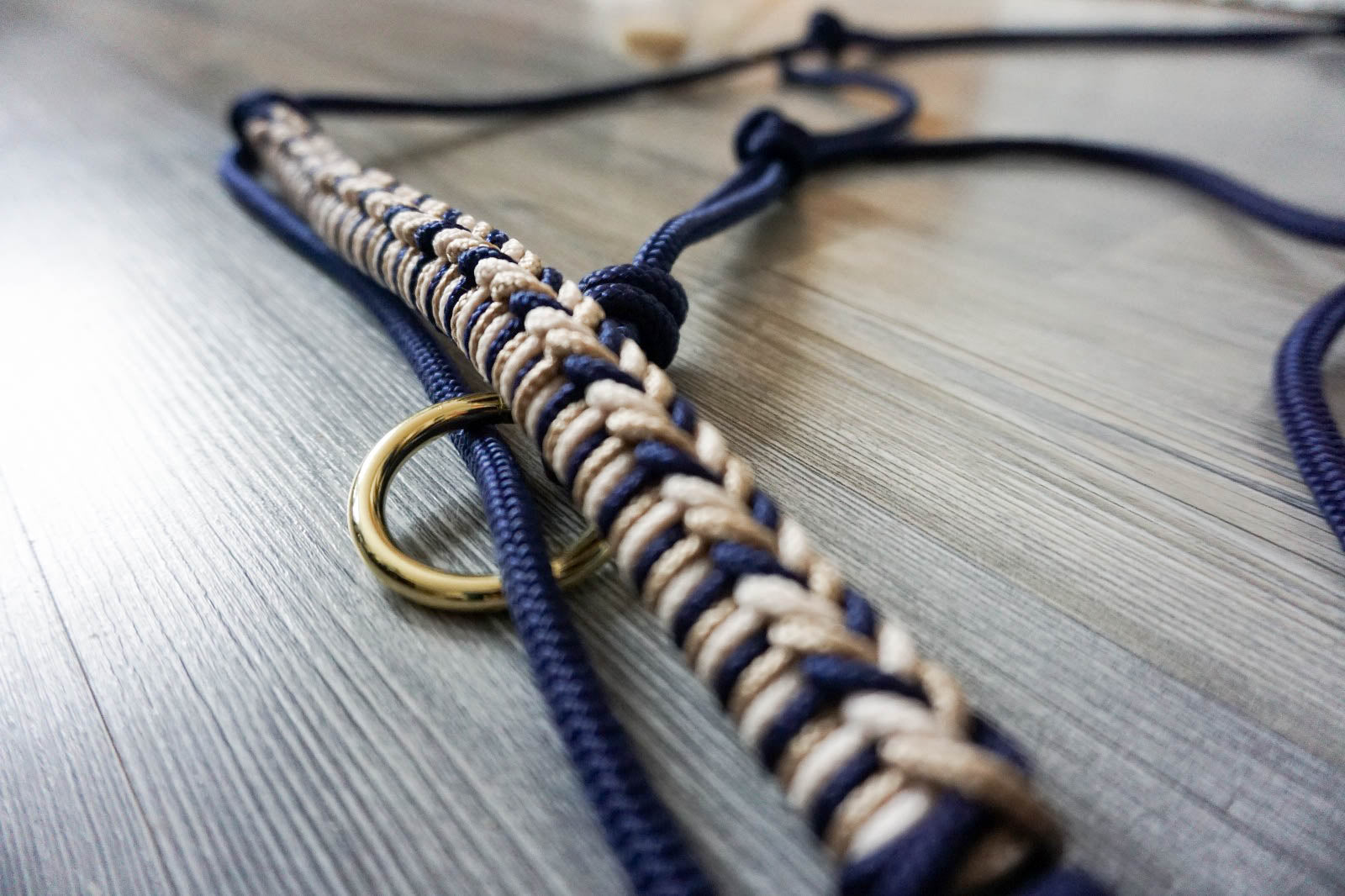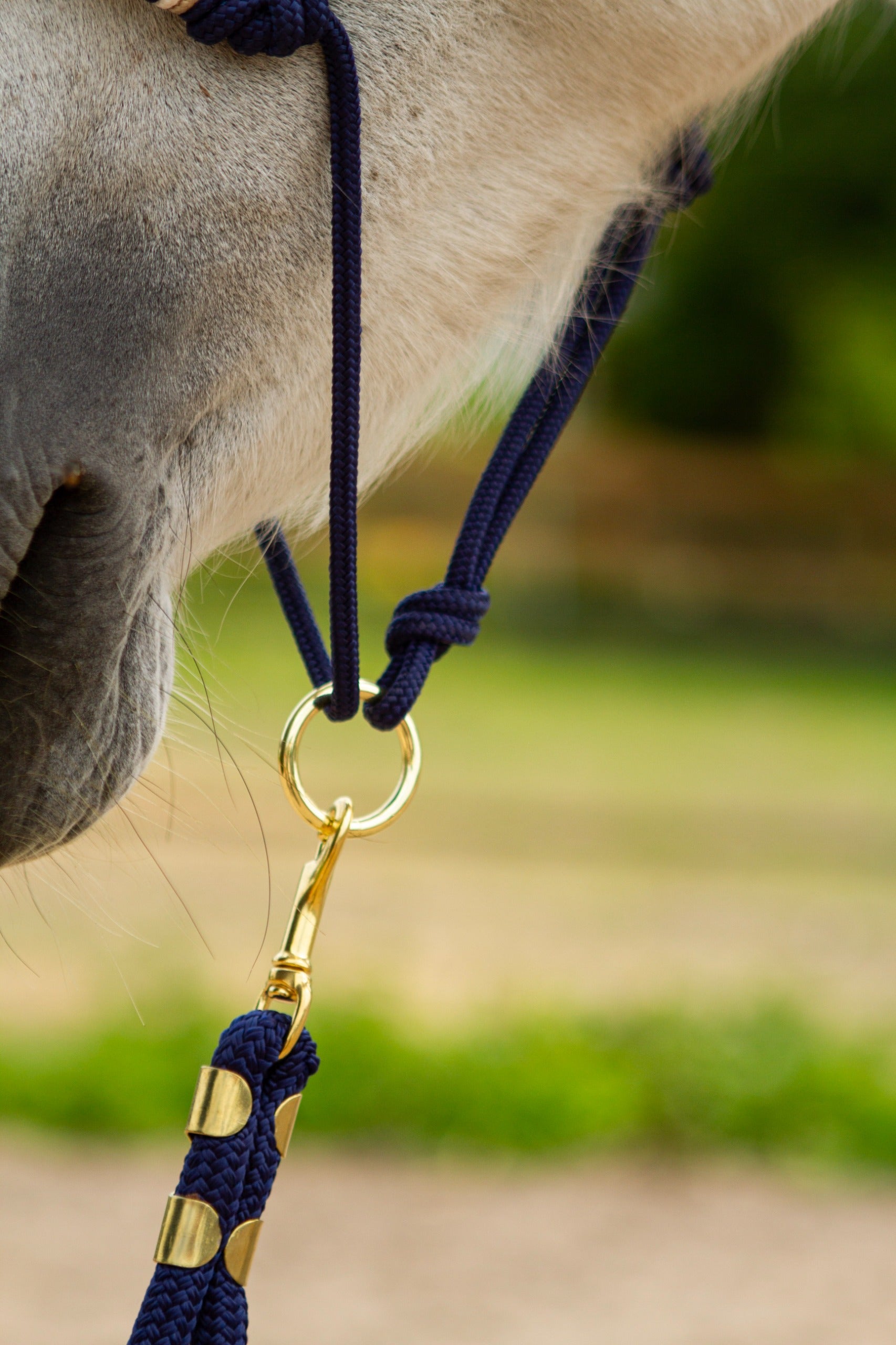 Neben der Verwendung von hochwertigen Materialien liegt uns der Komfort sehr am Herzen. Damit das Knotenhalfter während der Arbeit nicht verrutsch haben wir uns für einen Ring entschieden der sich frei bewegen kann statt einem festen Knoten.